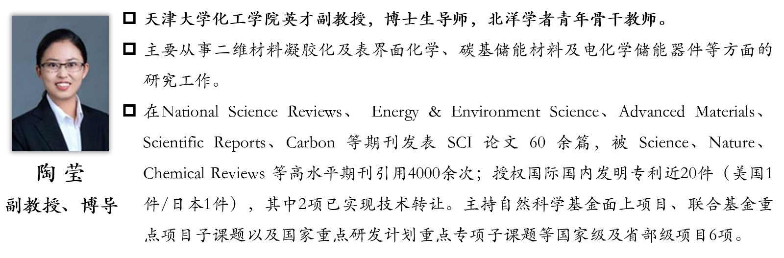 天津大学化工学院“碳纳米材料和电化学储能团队”导师团