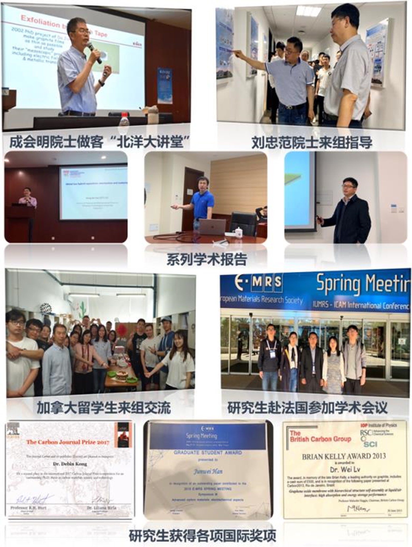 团队与国内外众多知名科研机构、高校有着良好密切的合作,每年邀请数十位相关领域知名专家来访,举办的“先进碳和纳米能源材料”系列报告已逾百场,为学生提供与领域大牛面对面交流机会,同时支持学生赴美国、日本、新加坡、荷兰、澳大利亚、法国等国家参加国际会议,为学生的科研和进一步深造提供了良好平台。