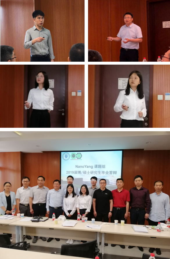 2019年5月19日,Nanoyang课题组2019届博/硕士研究生学位论文答辩会在50教学楼A219会议室顺利举行。中科院金属所白朔研究员、天津理工大学印寿根教授、天津大学杨永安教授、李新刚教授、翁哲教授组成答辩委员会。Nanoyang课题组博士生焦珑、戚昌盛,硕士生汪露、李培参加答辩。