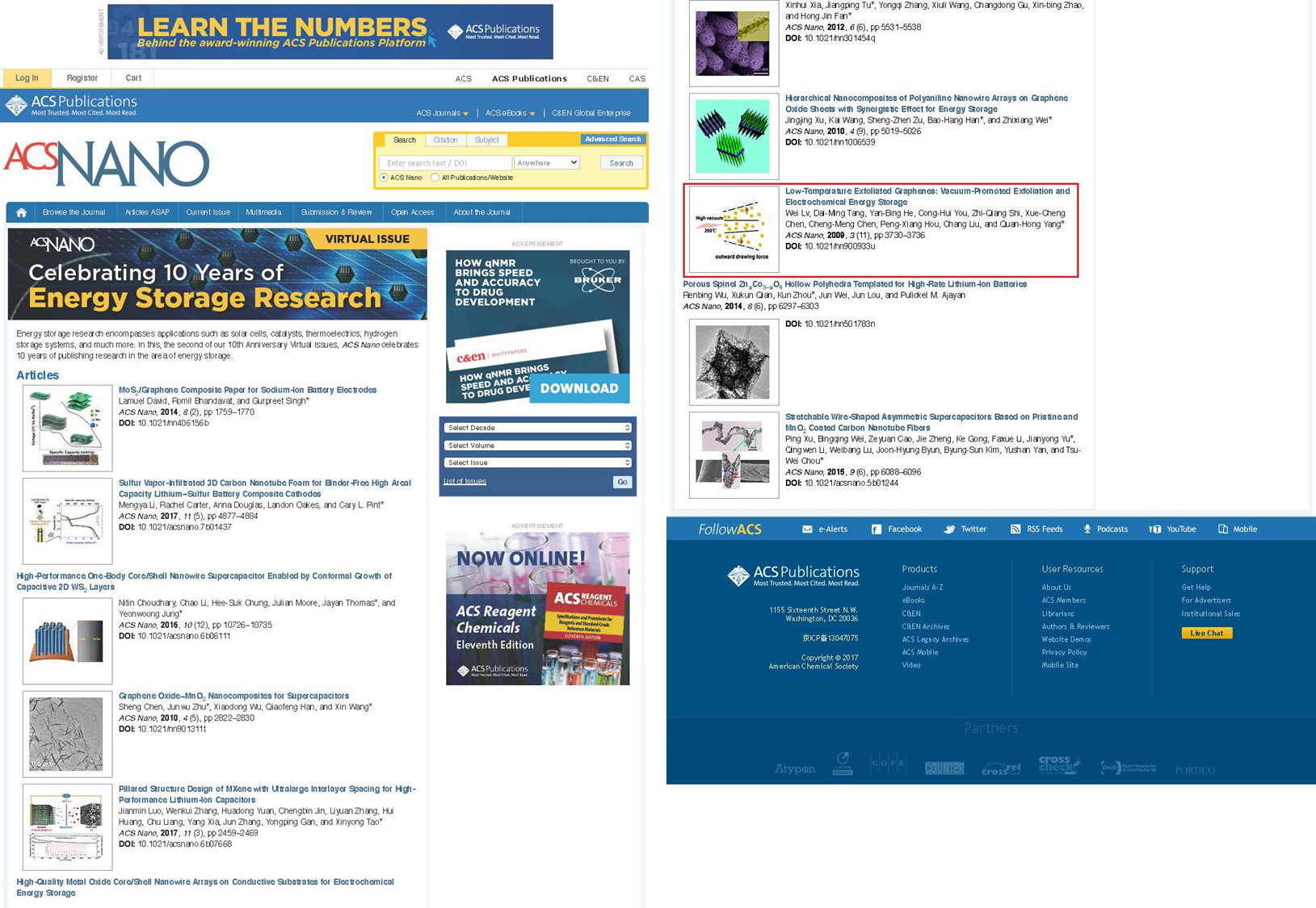 恭喜吕伟博士题为“Low-Temperature Exfoliated Graphenes: Vacuum-Promoted Exfoliation and Electrochemical Energy Storage”的论文入选ACS Nano十年纪念刊(Energy Storage领域共10篇论文)
