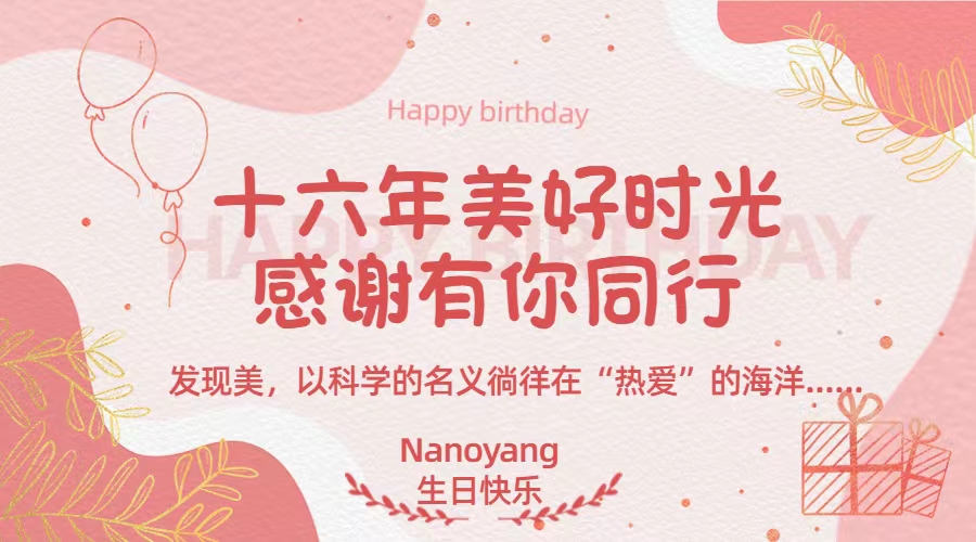 十六载风雨兼程,十六载春华秋实!2022年9月25日,Nanoyang课题组迎来了第十六个生日。在这十六年中,Nanoyangers挥洒着青春的汗水,肆意追逐着梦想,收获了成长、收获了友谊并成为Nanoyang大家庭中的重要组成。