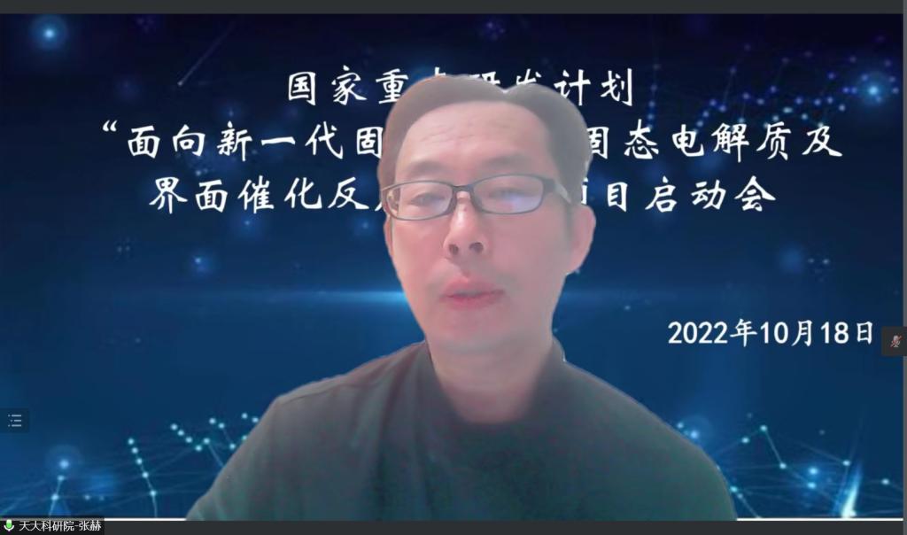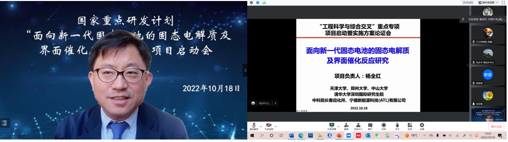 2022年10月18日,天津大学作为项目牵头单位承担的国家重点研发计划“工程科学与综合交叉”重点专项“面向新一代固态电池的固态电解质及界面催化反应研究”项目启动会暨实施方案论证会在线上召开。