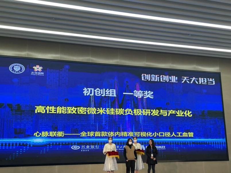 2023年1月6日,第四届天津大学“海棠杯”校友创新创业大赛全国总决赛在津举行,本次大赛由天津大学、天津市科学技术局、天津市人力资源和社会保障局、天津市金融工作局、天津市津南区人民政府、天津市南开区人民政府、天津市青年科技工作者协会指导,天津大学科学技术发展研究院、天津大学合作办公室、天津大学校友总会主办,吸引了来自全国14个省市的131个硬科技项目。肖菁博士代表Nanoyang锂电团队和至微新能(常州)科技有限公司参赛,经过激烈角逐,参赛项目“高性能致密微米硅碳负极研发与产业化”荣获初创组一等奖!