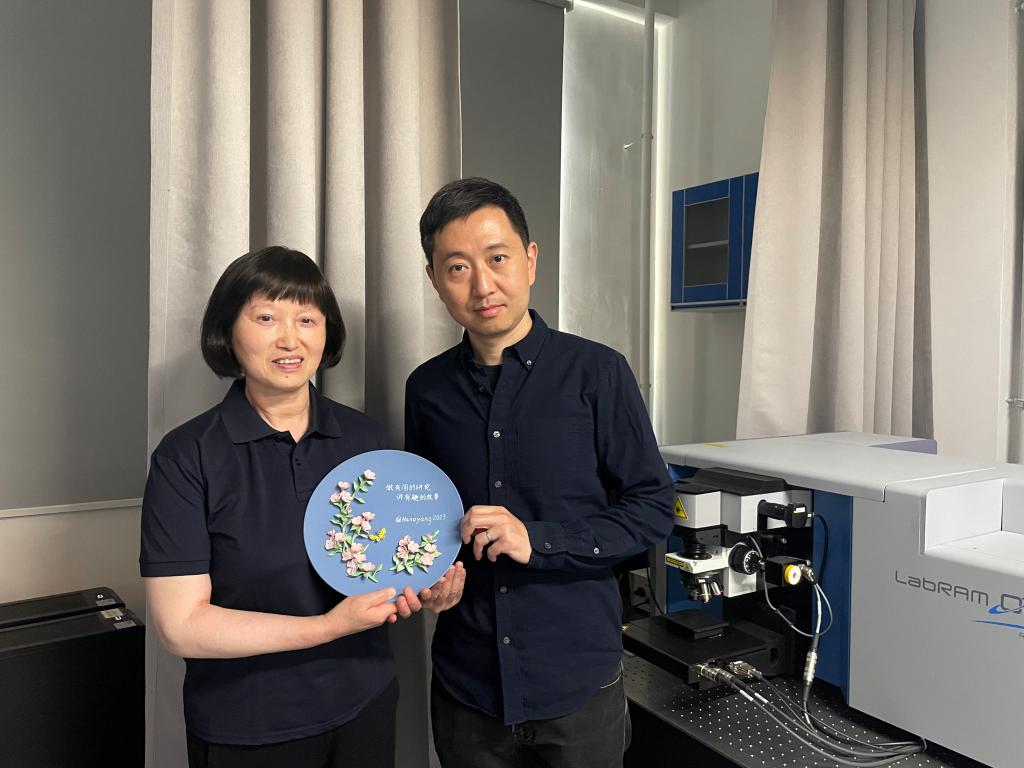 会后,翁哲教授邀请濮玉梅经理参观Nanoyang课题组的拉曼测试实验室,并赠予纪念品合影留念。