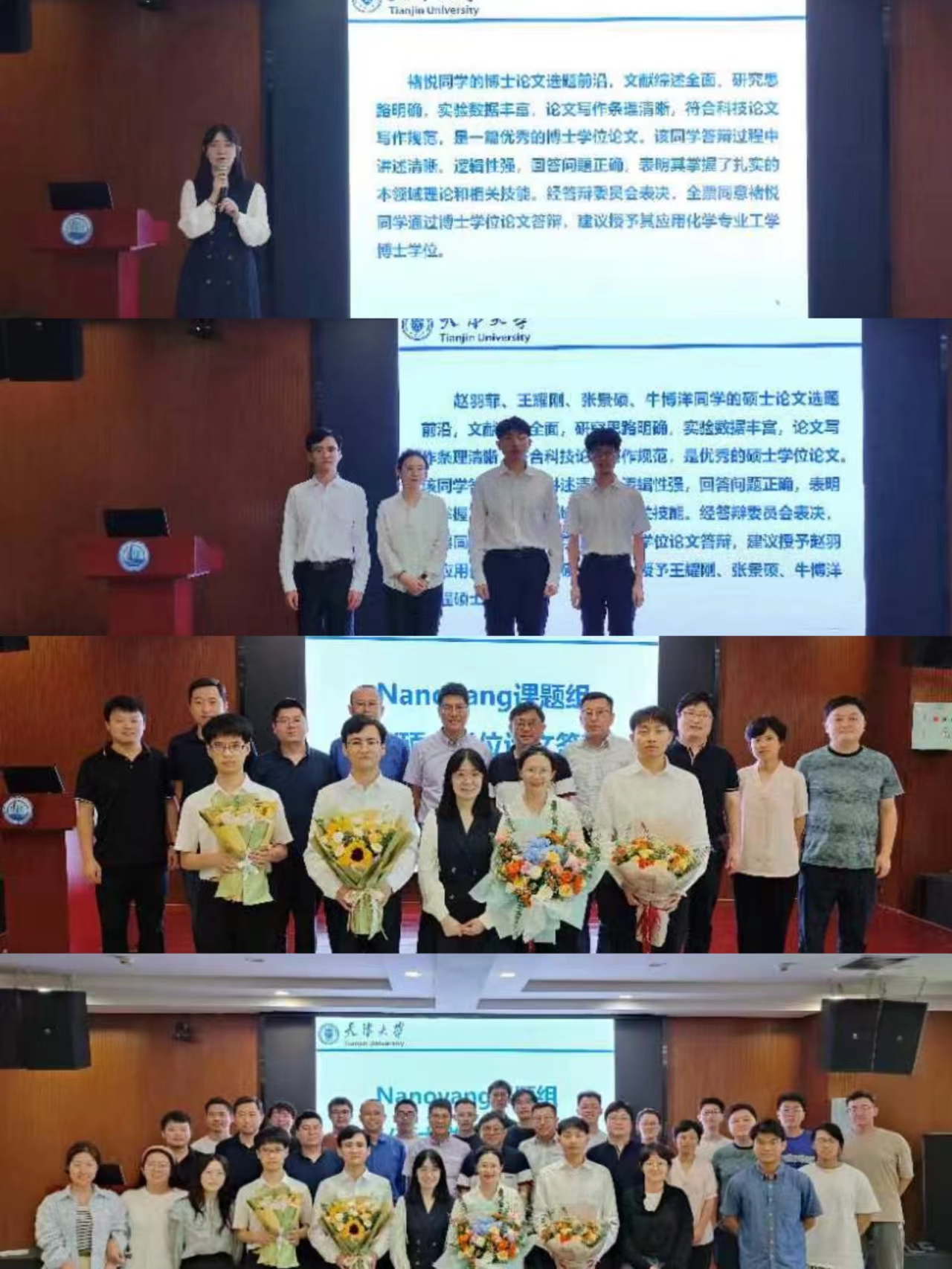 2023年8月13日上午,Nanoyang课题组硕/博士学位论文答辩会在天津大学化工学院50教学楼A332会议室顺利举行。