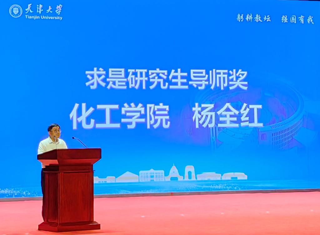 热烈祝贺杨全红老师荣获天津大学“求是研究生导师奖”,并作为获奖代表上台发言。杨老师心潮澎湃地回顾了17年间课题组的发展历程,点点滴滴生动展现了感性的“求实”和理性的“求是”是流淌在天大人血脉中的精神密码。