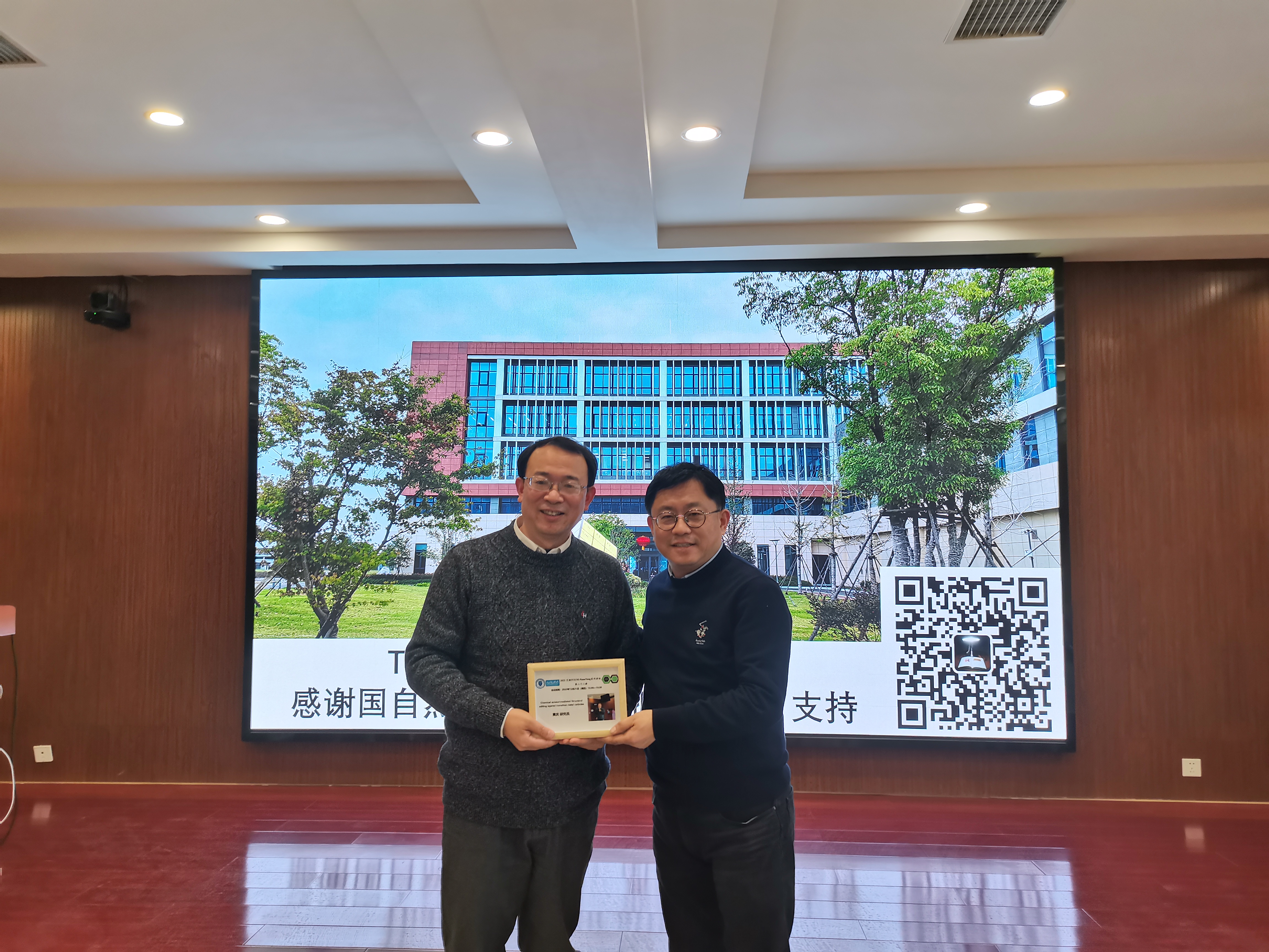 黄老师的报告不仅带给我们很多科研上的启发,还结合自身的经历,给同学们很多个人成长的宝贵建议。杨全红老师也一并分享了科学研究和个人发展道路上的宝贵经验。最后,由杨老师为黄老师送上讲座现场照片留念。