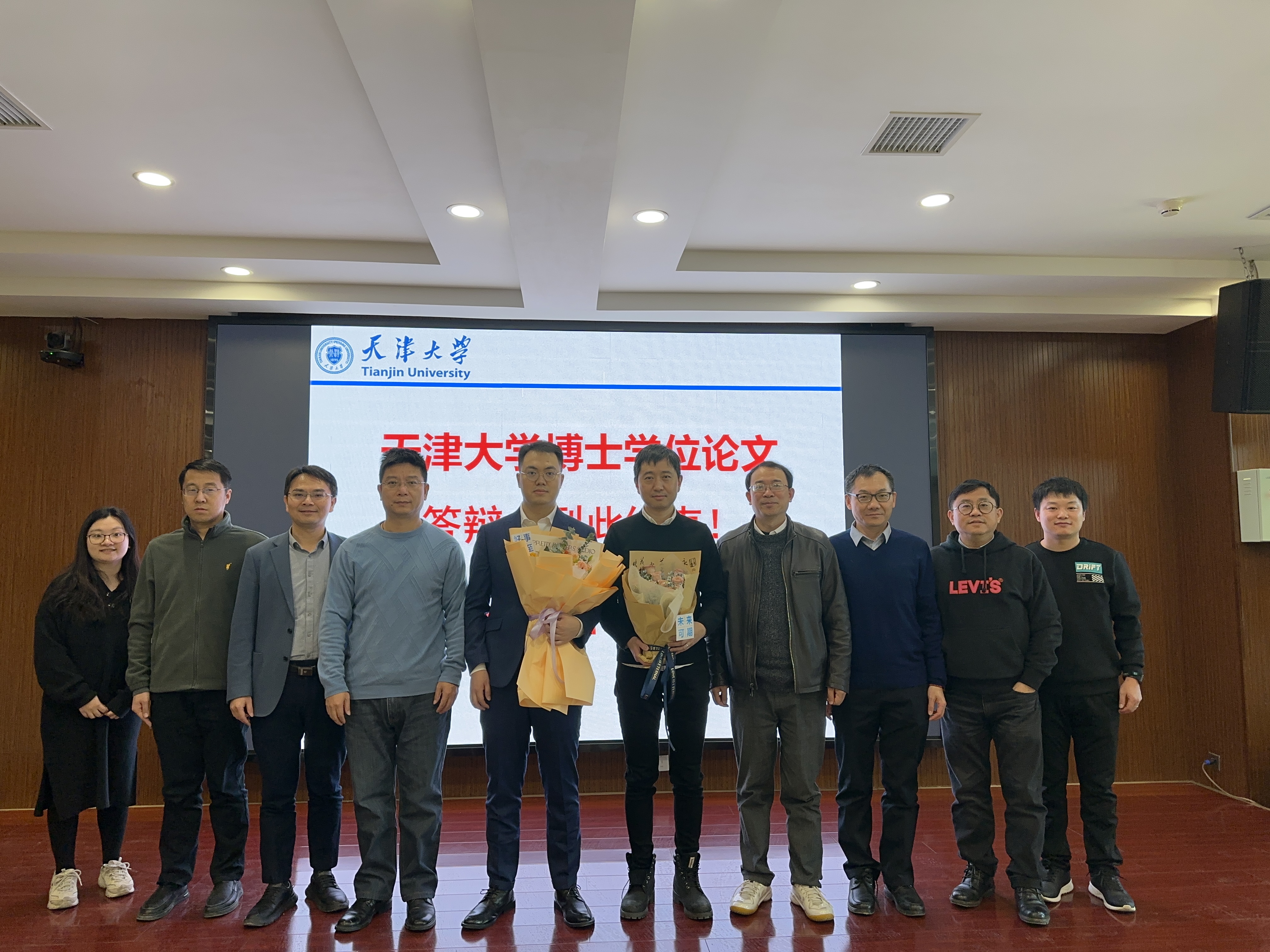 课题组荣幸地邀请到天津理工大学丁轶教授为答辩委员会主席,中科院宁波材料所黄庆研究员、天津大学李新刚教授、张兵教授、张生教授共同组织成答辩委员会。