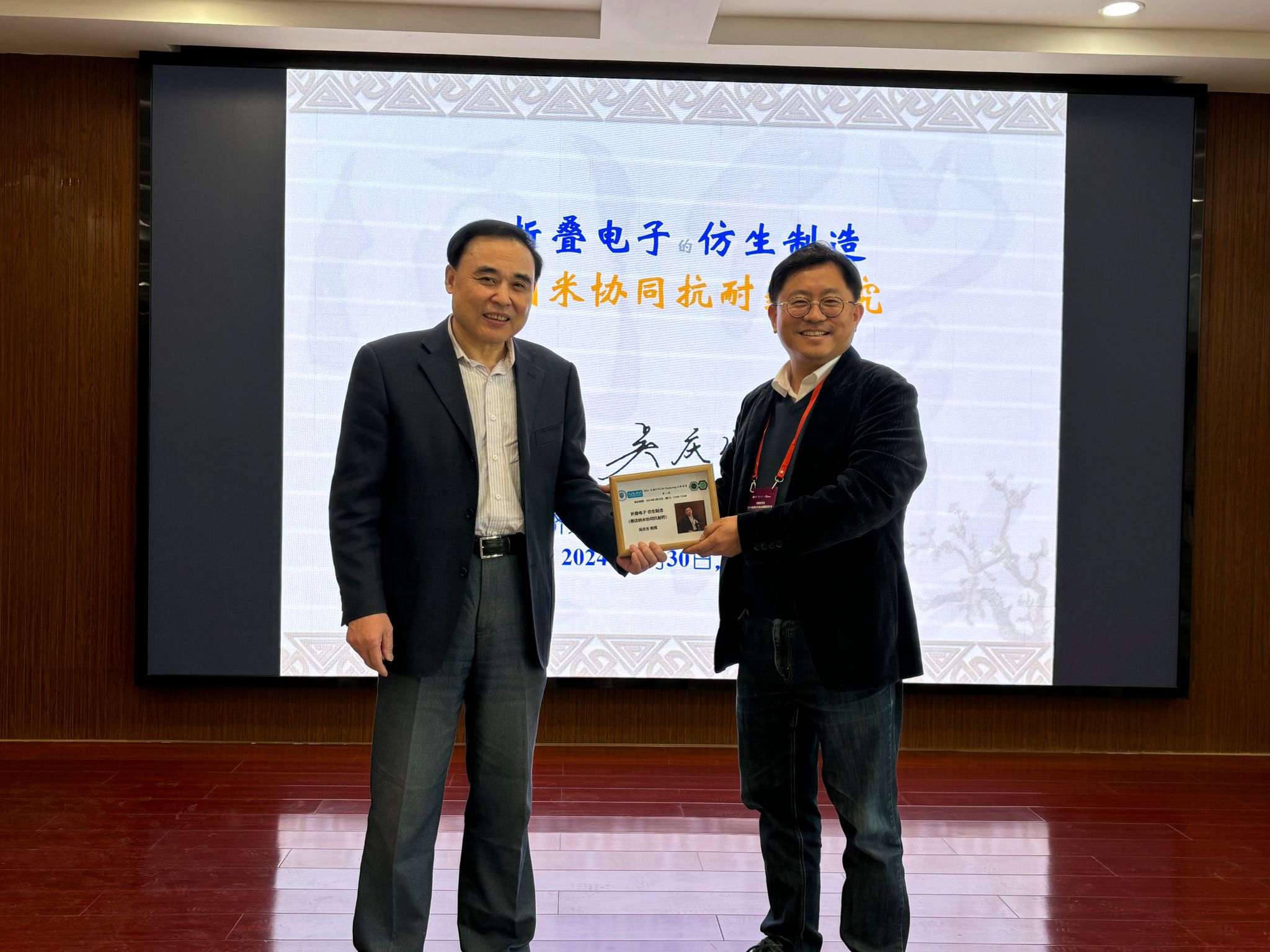 吴老师的报告从全新的角度带给我们许多科研上的启发,让同学们对仿生领域有了更加深入的了解。最后,由杨老师为吴老师送上讲座现场照片留念。