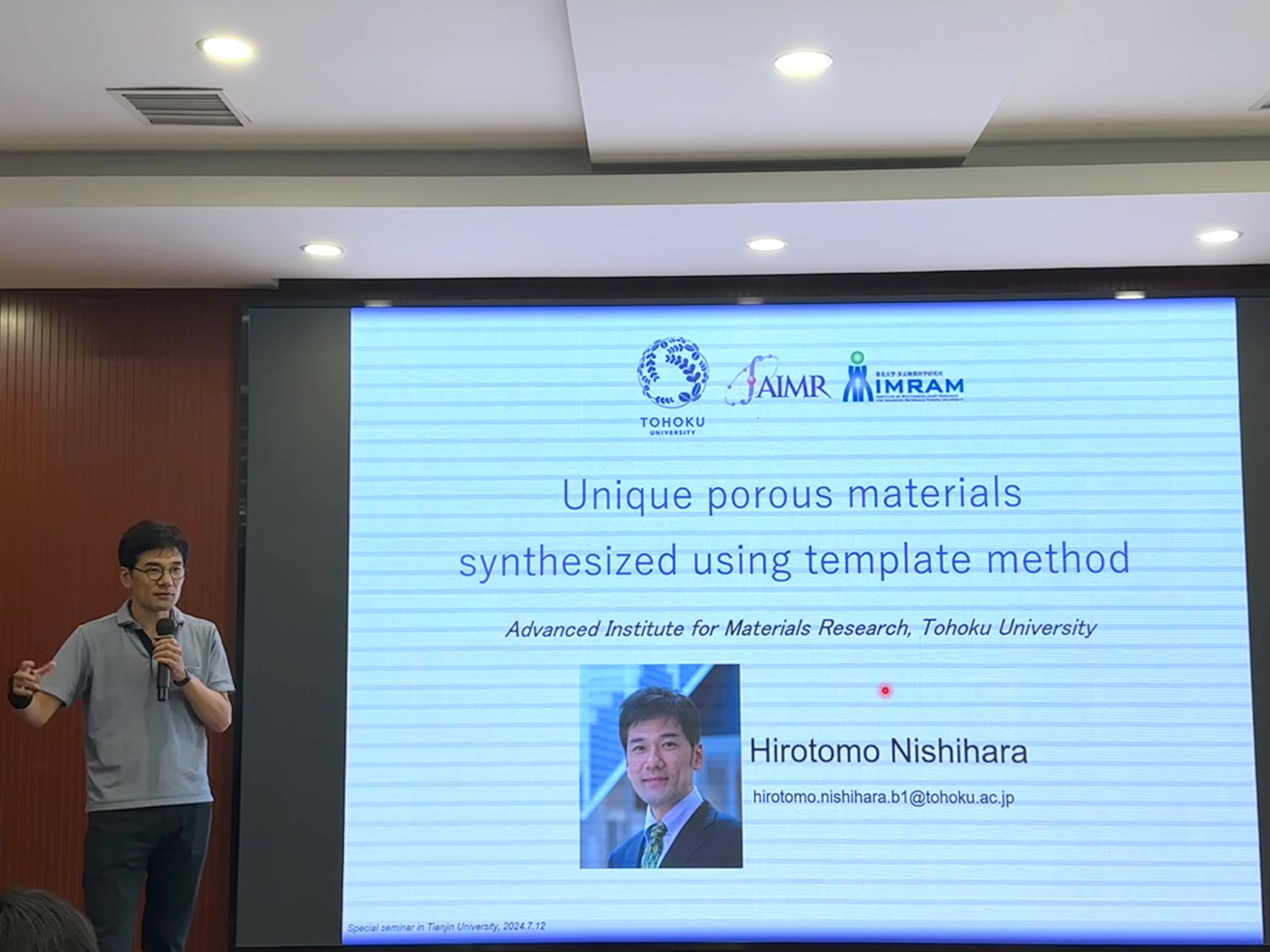 2024年7月12日, 2024艾维IVIUM-NanoYang系列大师讲堂第十四讲开讲。日本东北大学Nishihara教授作为报告嘉宾,带来了题为《Unique porous materials synthesized using template method》的精彩报告。Nanoyang课题组全体师生参加。