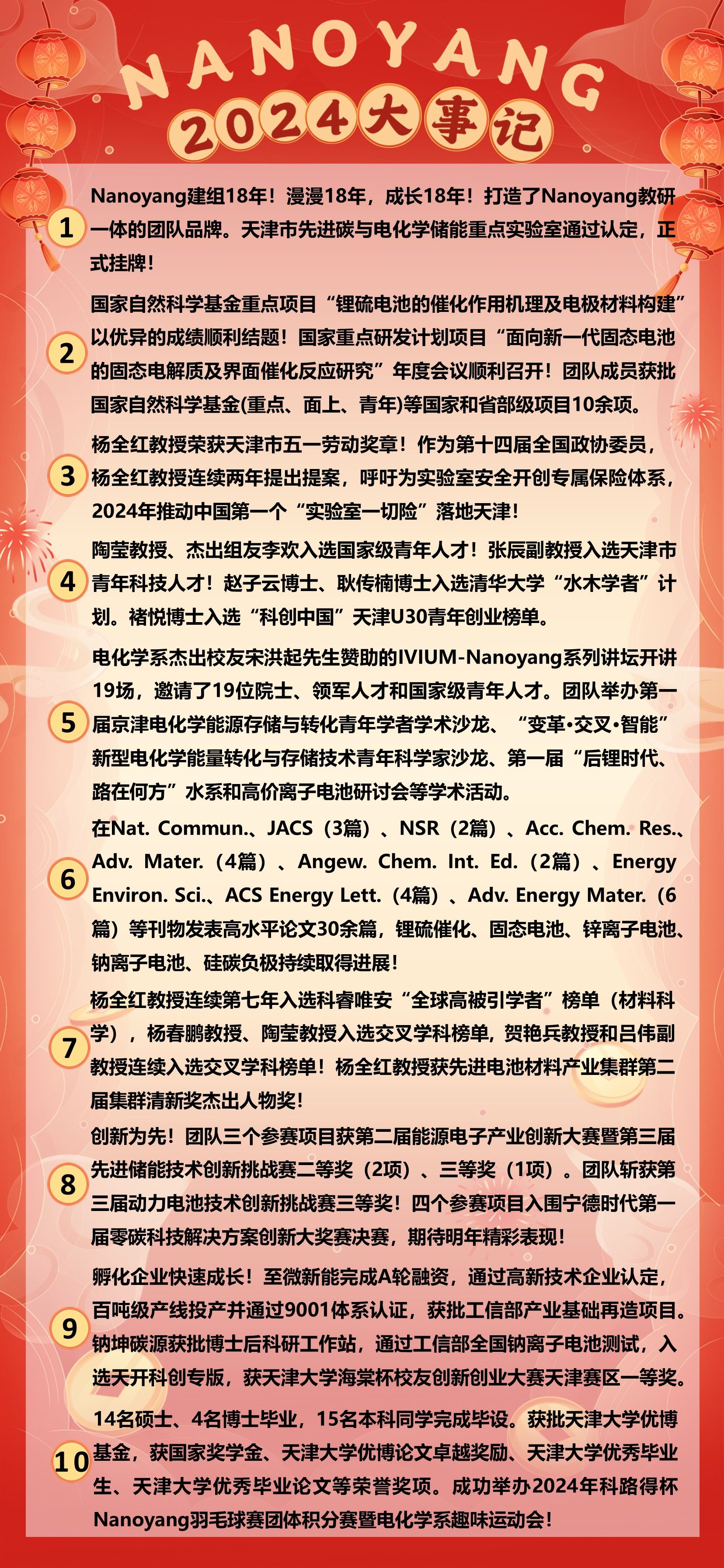 新的一年,锂硫小组愿课题组似祥龙昂首,科研屡创佳绩,成果丰硕。盼老师们身强体健,万事胜意;伙伴们科研顺遂,阖家幸福!