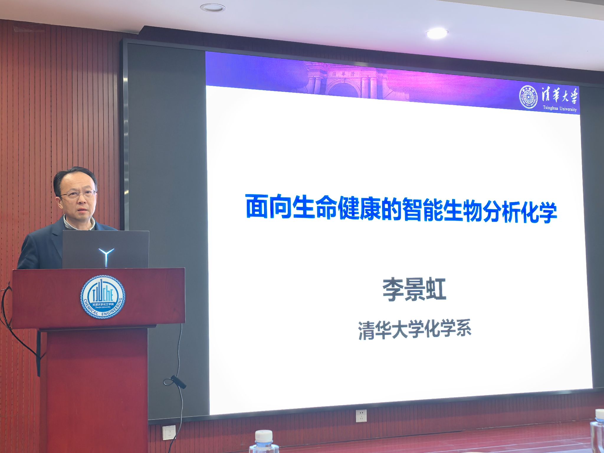 讲座伊始,李景虹院士深入浅出地介绍了生物分析化学领域的前沿进展,对复杂生命现象进行了科学而精准的解析。他详细阐述了人工智能为生命健康领域带来的颠覆性变革,从分子工具的创新、健康监测的智能化,到纳米药物的研发以及人工智能在实验分析中的交叉融合,全方位、多角度地展示了“AI+科学”的创新模式,为在场师生带来了极具启发性的新观念。