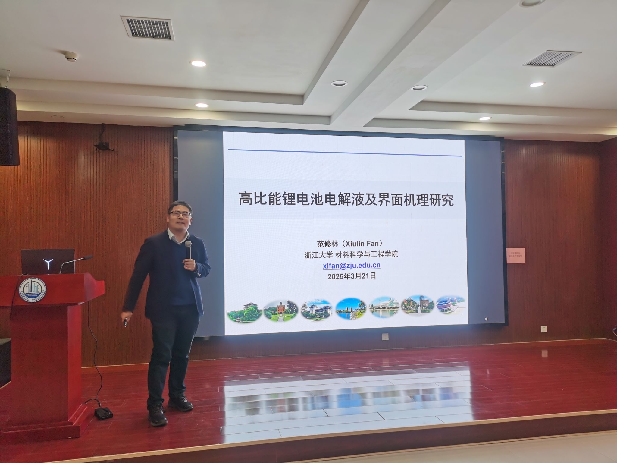 浙江大学范修林教授带来了题为《高比能锂电池电解液及界面机理研究》的精彩报告,范老师的报告聚焦于电解液成分优化,探寻新型锂盐、溶剂组合以提升离子传导性,以一种浅显易懂的方式为我们剖析了电极 / 电解液界面反应,明晰成膜过程、界面稳定性的影响因素。