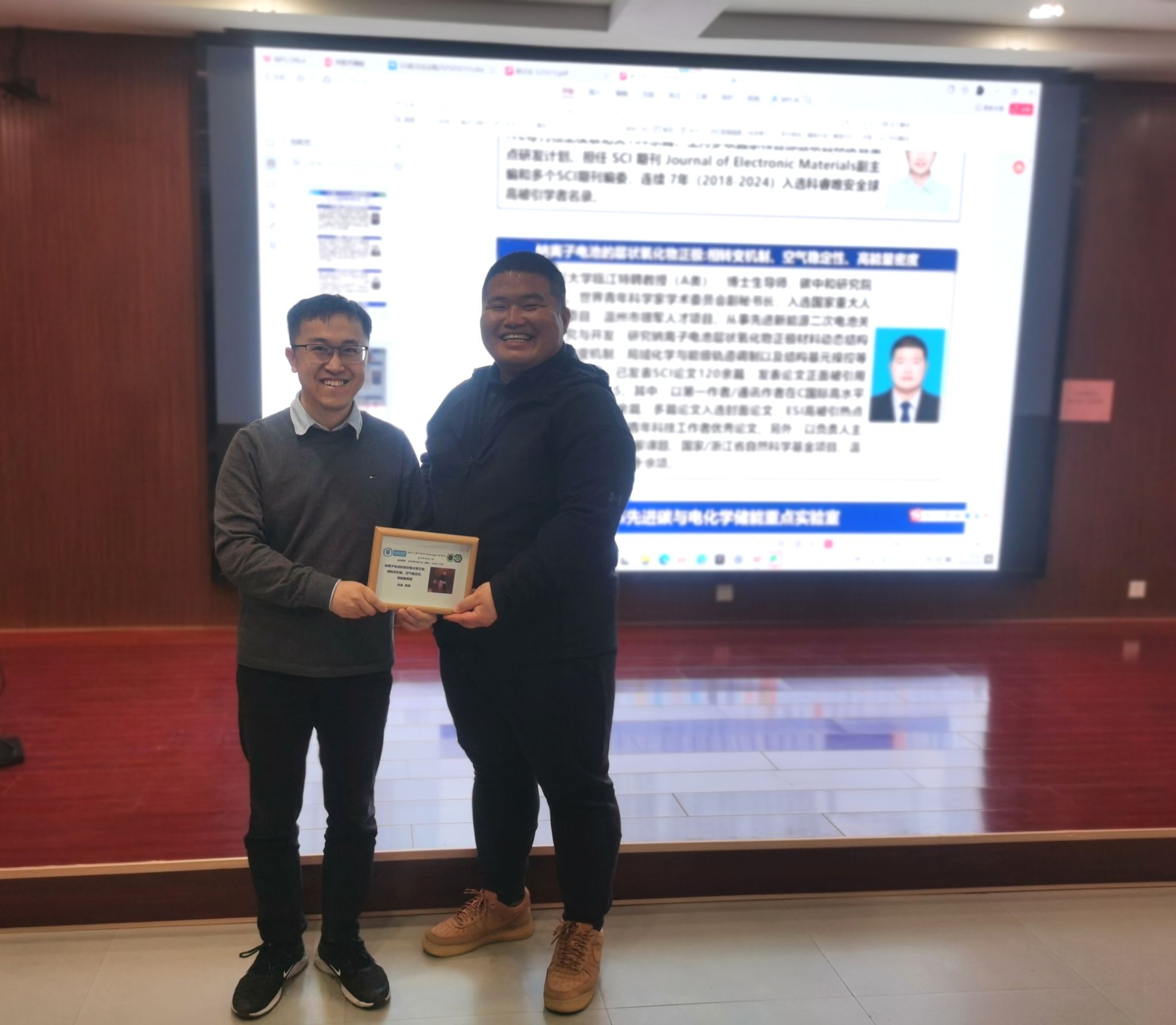温州大学瓯江特聘教授肖遥老师带来了题为《钠离子电池的层状氧化物正极:相转变机制、空气稳定性、高能量密度》的精彩报告,讲述了他从事先进新能源二次电池关键材料的研究年项目与开发,研究钠离子电池层状氧化物正极材料动态结构演变,可控相变机制,局域化学与能级轨道调制以及结构基元操控等方面的工作。肖老师的报告条理清晰,论据详实,对复杂问题的剖析鞭辟入里,提出的策略极具前瞻性与实操性,令大家印象深刻。