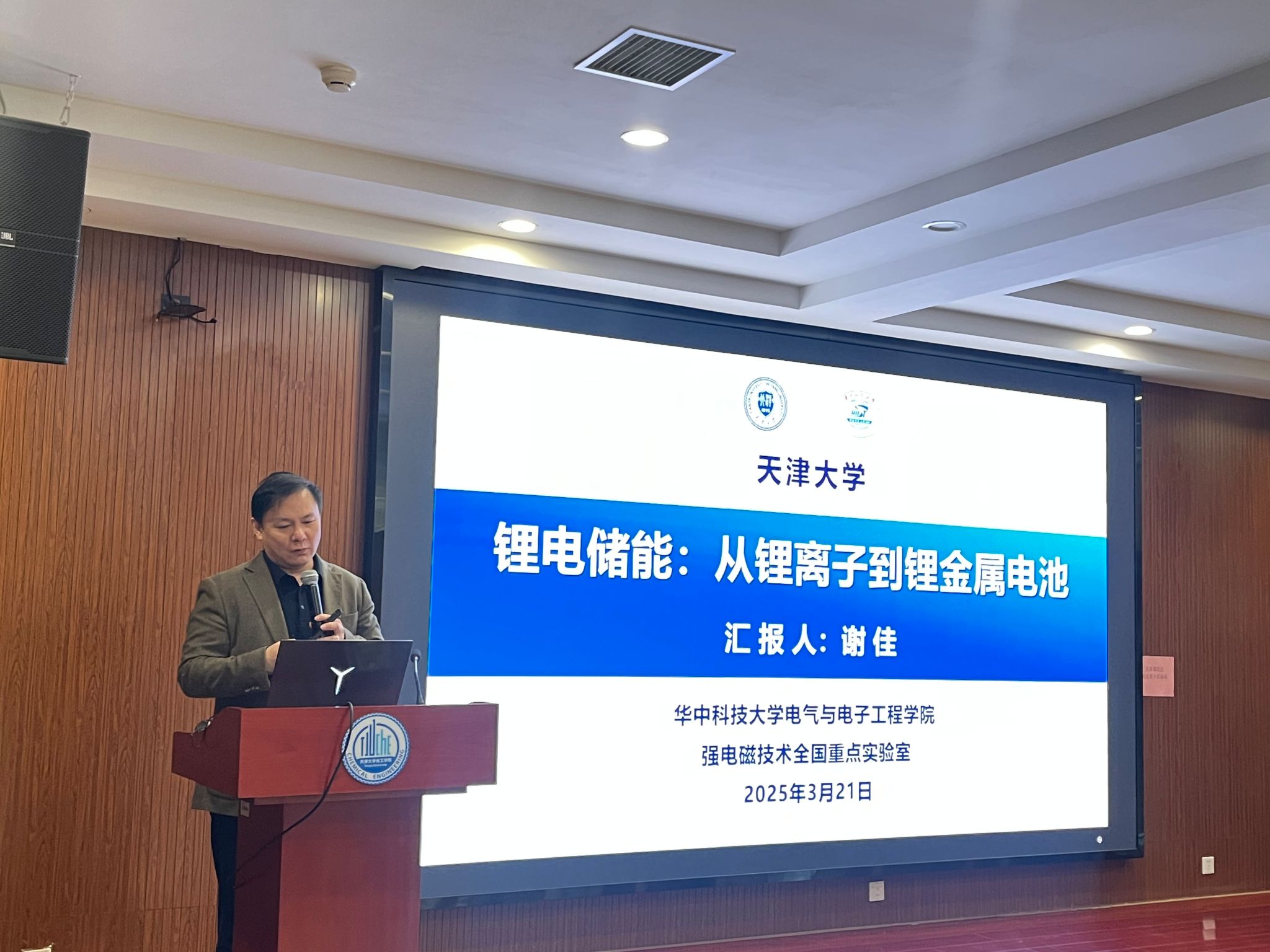 华中科技大学谢佳教授带来了题为《锂电储能:从锂离子到锂金属电池》的精彩报告,谢老师分享了他在锂金属电池方面的研究成果,他从转化型电极反应特征和失效机制入手,创制了正负极材料、电解液材料和电极结构,最终突破了性能瓶颈。谢老师的报告从全新的角度带给我们许多科研上的启发,让同学们对锂电储能领域有了更加深入的了解。