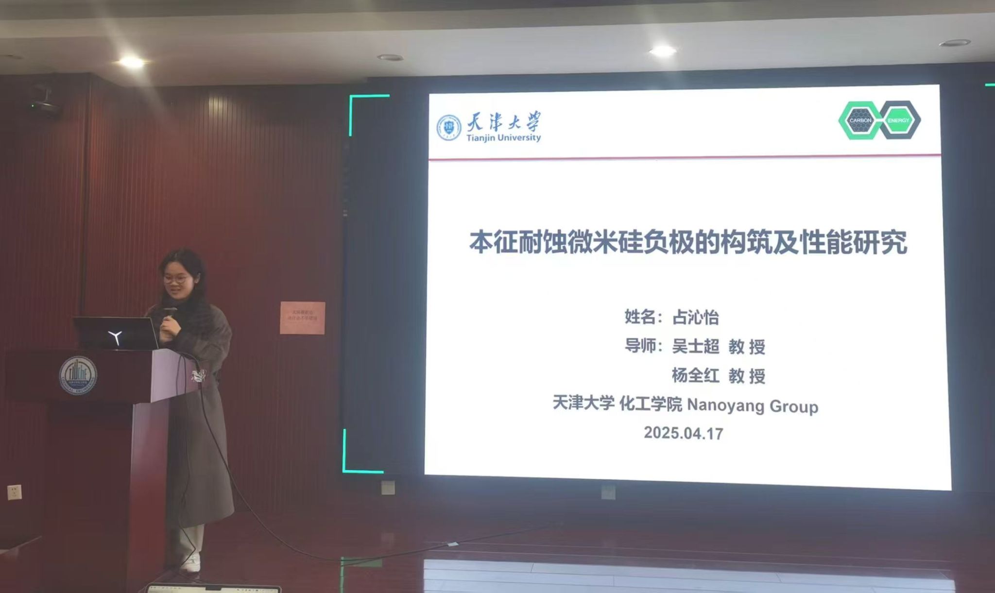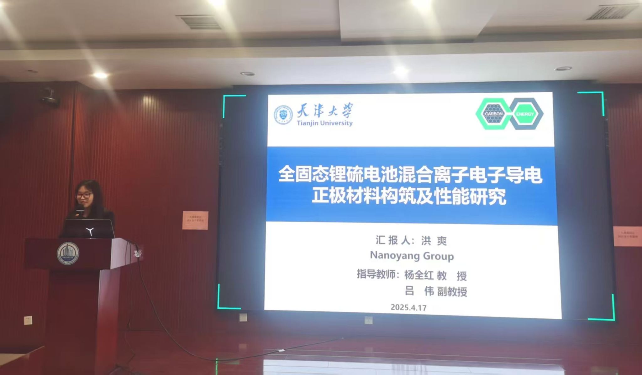在接下来的报告环节,获奖人依次分享了自己在钠离子电池、固态电池、锂硫电池、铝离子电池等方面的成果。他们用专业的语言、详实的数据和生动的展示,介绍了自己在科研项目中的探索与发现。每一项成果都凝聚着获奖者的智慧与汗水。他们的精彩汇报不仅展现了自身扎实的学术功底和创新能力,也让在场观众领略到学术研究的魅力与价值。