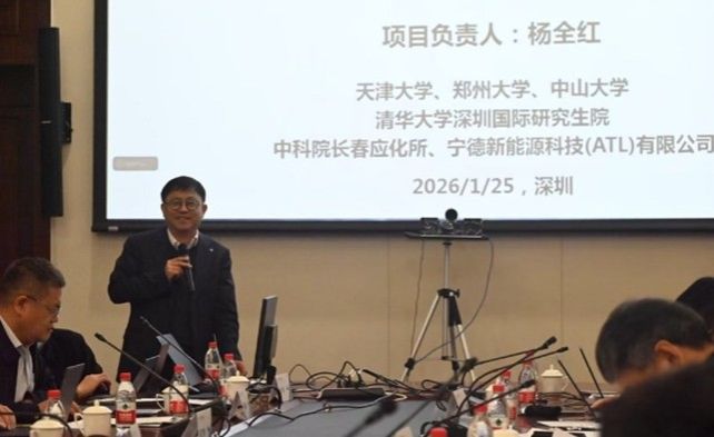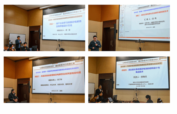 2025年1月25日,国家重点研发计划"面向新一代固态电池的固态电解质及界面催化反应研究"项目年度总结会议在清华大学深圳国际研究生院召开。国家自然科学基金委高技术研究发展中心车子璠副处长、项目责任专家王志峰研究员、李亮教授、李先锋研究员,以及专家组成会明院士、陈军院士、赵天寿院士,康飞宇教授、温兆银研究员、吴伯荣教授、黄云辉教授、王成新教授、肖成伟教授,李泓研究员、张新波研究员和宁德新能源鲁宇浩院长等专家出席。