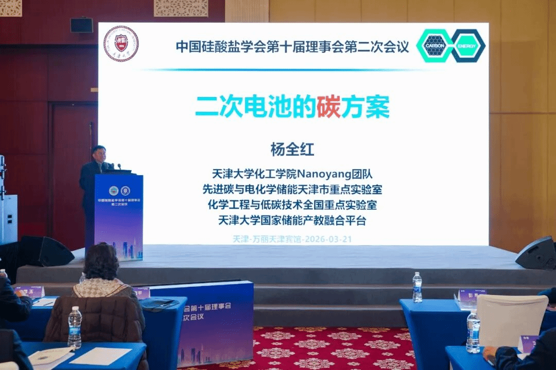 2026年3月21日,中国硅酸盐学会第十届理事会第二次会议在天津召开,天津大学Nanoyang课题组在学会指导下承办此次会议。学会理事长高瑞平,副理事长缪昌文、成会明、傅正义、陈立东、刘建华、李敬锋、郅晓、张龙、苏良碧、王发洲,秘书长晋占平等110位理事出席会议,监事长彭寿,监事宋力昕,学会办事机构相关工作人员列席会议。会议由缪昌文副理事长主持。