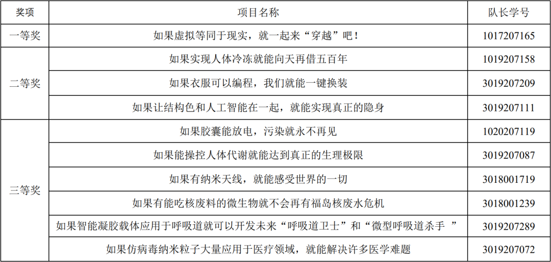 极具开拓精神的Nanoyangers开动脑筋,畅想未来,在天津大学第五届“未来30年”颠覆性创新创想大赛化工学院院级赛道上,由翁哲老师指导的《如果衣服可以编程,我们就能一键换装》荣获二等奖、《如果有能吃核废料的微生物就不会再有福岛核废水危机》荣获三等奖,由陶莹、张辰老师指导,贾怡然、唐全骏、李芳冰、于洪源、李振申、杨涵和海洋学院本科生潘子一参与的《如果胶囊能放电,污染就永不再见》荣获三等奖。祝贺老师和同学们,创新畅想,颠覆未来,Nanoyangers在路上!